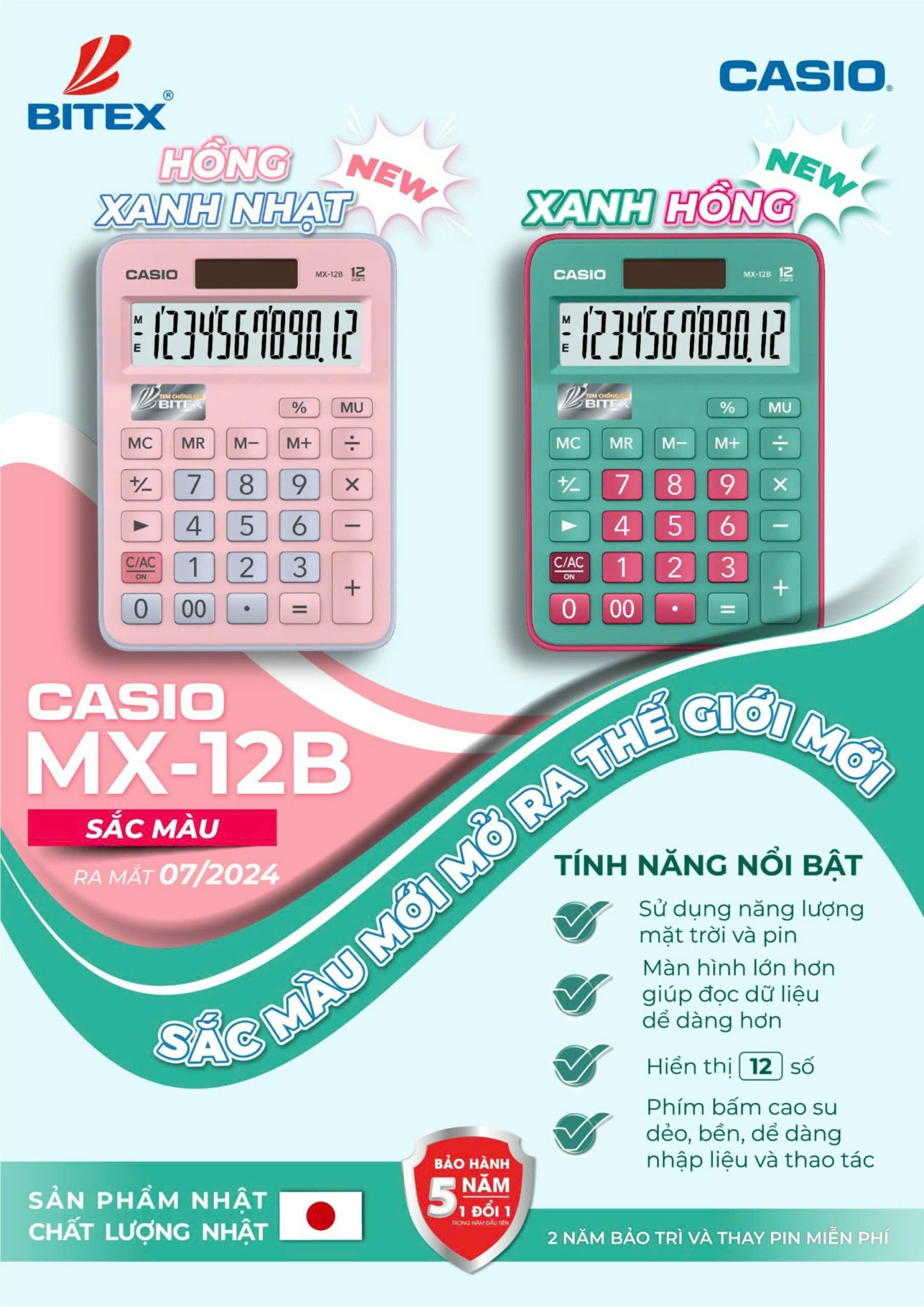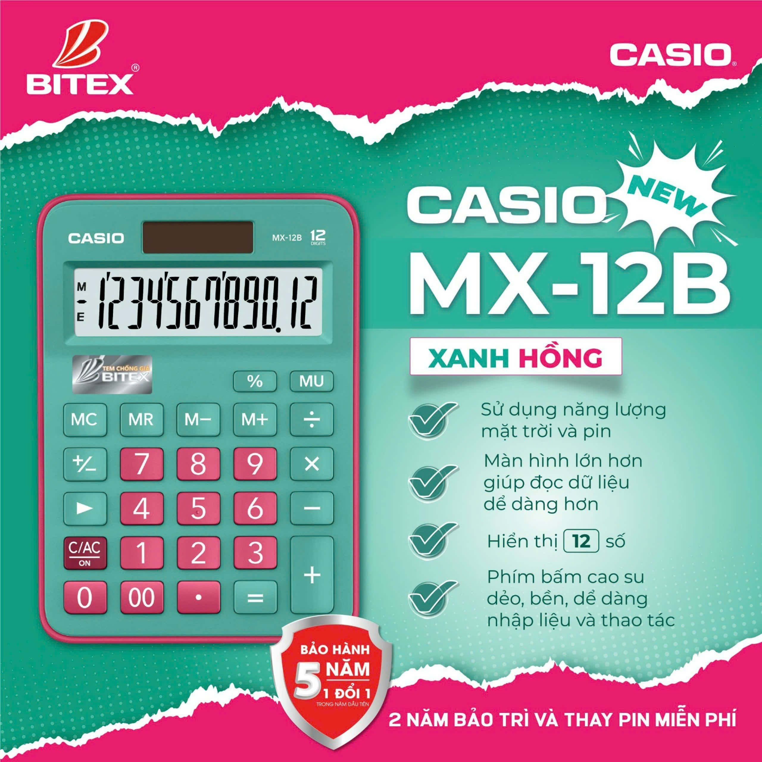 – Máy tính Casio MX-12B thiết kế màn hình lớn hiển thị 12 số rõ ràng, dễ quan sát.